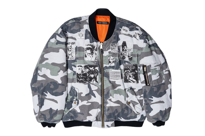 Its collection of Raf Simons-inspired bomber jackets has expanded once again with both the Eva Woodland Bomber and Eva Bomber Jacket featuring a vintage treated camouflage base accompanied by patches that pay homage to the beloved anime. A similar approach is taken with both the black-and-white Patched Turtleneck and Crimson Scythe Sweater, the latter of which sees the brand's fan favorite motif of Rei Ayanami holding a scythe make its return. Rough Simmons has also flipped Raf Simons' I Love NY sweater from FW17 with a similar cropped, boxy fit that flips the NERV logo with a "ROSIM" callout. This same logo edit appears on the ROSIM Sweatpants while the Spear of Longinus-inspired Embroidered Spear Denim serves as another option for bottoms.